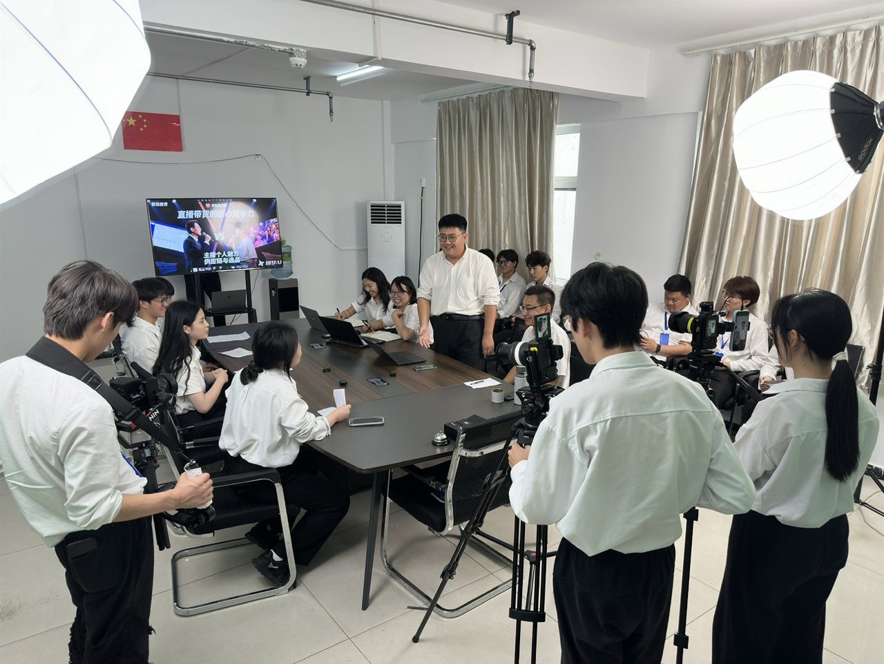 在辩论过程中,学生代表队属于反方,学生个个像像8,9点种的小太阳,走到哪儿哪儿亮堂堂,活力四射,浑身散发着自信光芒,情绪激昂。学生的沟通、表达、胆识、反应能力都非常优秀。老师队代表属于反方围绕品的重要性,主题更直接,更案例更精准,更加系统。从多角度说明选品、直播主播的重要性,从选品、低价、高价、主播之间的关系来进行辩解主播的重要性。